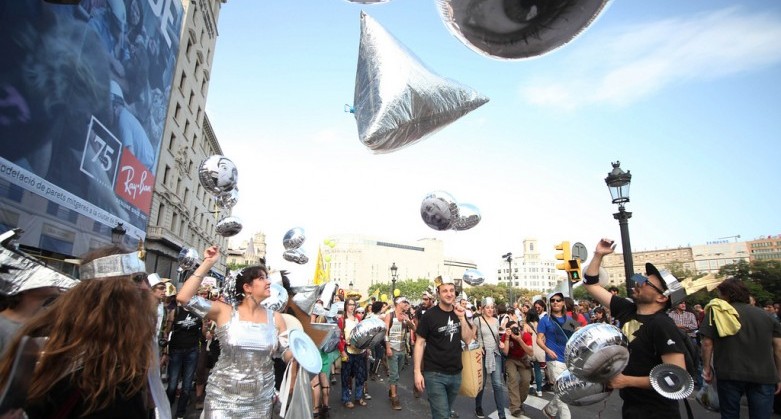 Given that this trend is growing internationally, and rather than play a cat and mouse game where normal people have the losing hand, we can turn the tables and ridicule these sorts of reactionary, short sighted, desperate measures with our greatest assets: imagination, humor and the fact that we’re the good guys. The following article, written by Spanish art-ivists Amador Fernández-Savater and Leónidas Martín, offers 12 examples drawn from the last five decades poised to inspire and provoke. And check this out: so many people are eager to learn more about the how-to and history of this approach, that this has been the single most widely Facebook-shared article in eldiario.es’s history! We’ve also included some English hyperlinks to follow up on some of these leads and subtitled the one video in Spanish. Although written in reaction to the passage of the new law in Spain, we believe that their application and appeal is universal. Read on…