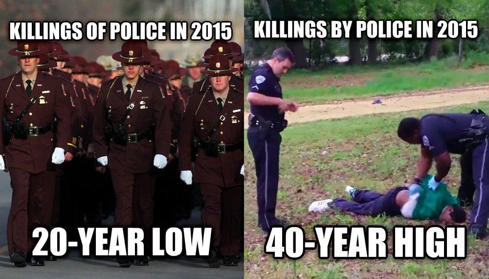 Despite what the media would have you believe, 2015 is actually the safest year for police officers in 20 years. Meanwhile, police killings of citizens are at a 40-year high.