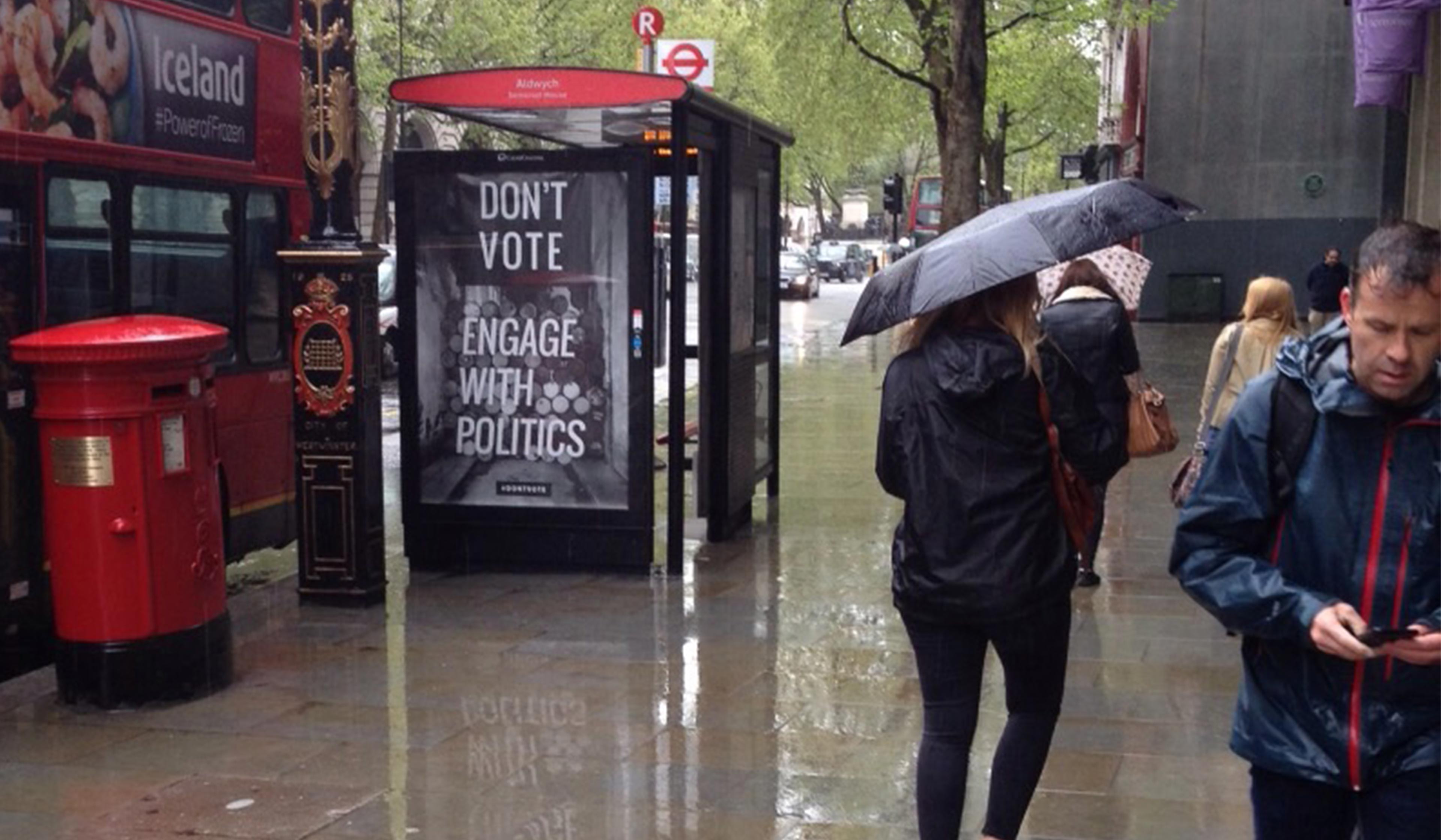 As commuters trudge home, their senses dulled by agonising hedge fund-bankrolled party political broadcasts and inane campaign updates from the mainstream media, they will be confronted with billboards across London that shout: Don’t Vote.