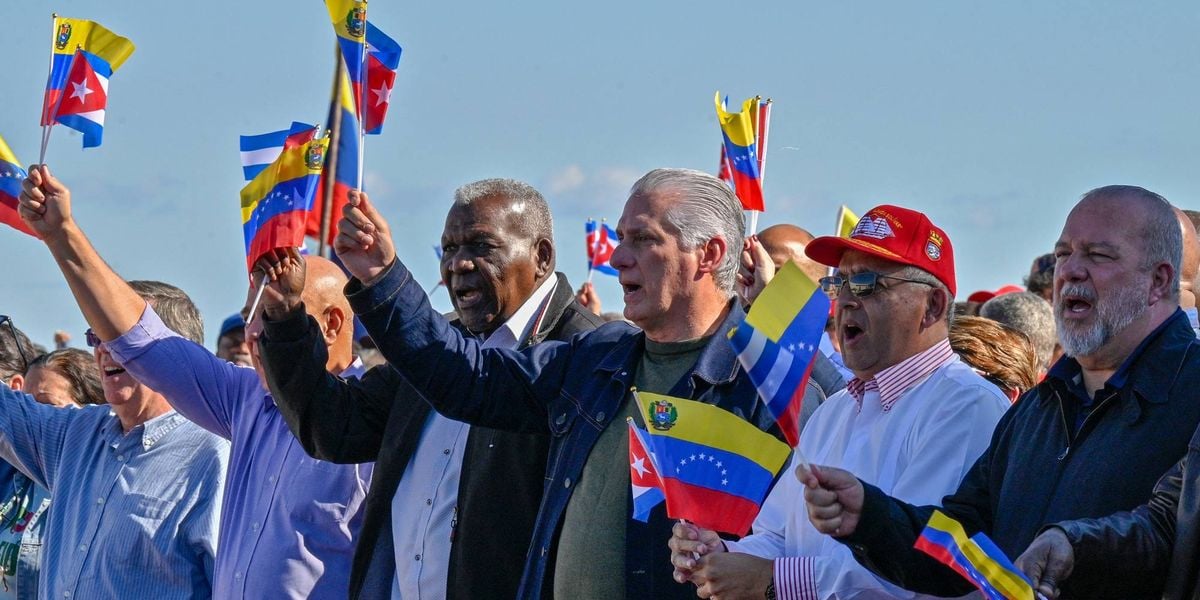 Cuban President Miguel Diaz-Canel waves a Venezuelan national flag in Havana on January 3, 2026. (Photo by Adalberto Roque/AFP via Getty Images)