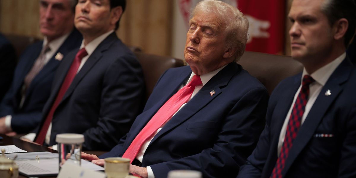 President Donald Trump attends a meeting of his Cabinet alongside (L-R) U.S. Interior Secretary Doug Burgum, U.S. Secretary of State Marco Rubio and U.S. Secretary of War Pete Hegseth in the Cabinet Room of the White House on December 02, 2025 in Washington, DC. (Photo by Chip Somodevilla/Getty Images)