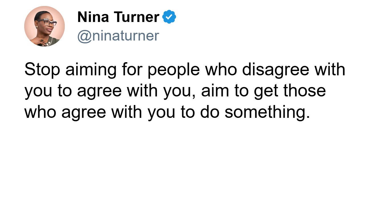 Nina Turner's insight cuts to a crucial distinction in movement work: there's a difference between trying to win arguments and trying to build power. But I'd take it further—the deepest purpose of activism isn't even primarily about changing minds or mobilizing the already-convinced. It's about breaking the spell of powerlessness itself.