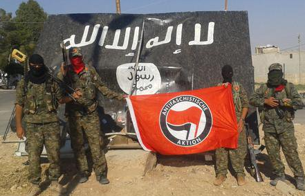 | The anti-fascist flag is raised |