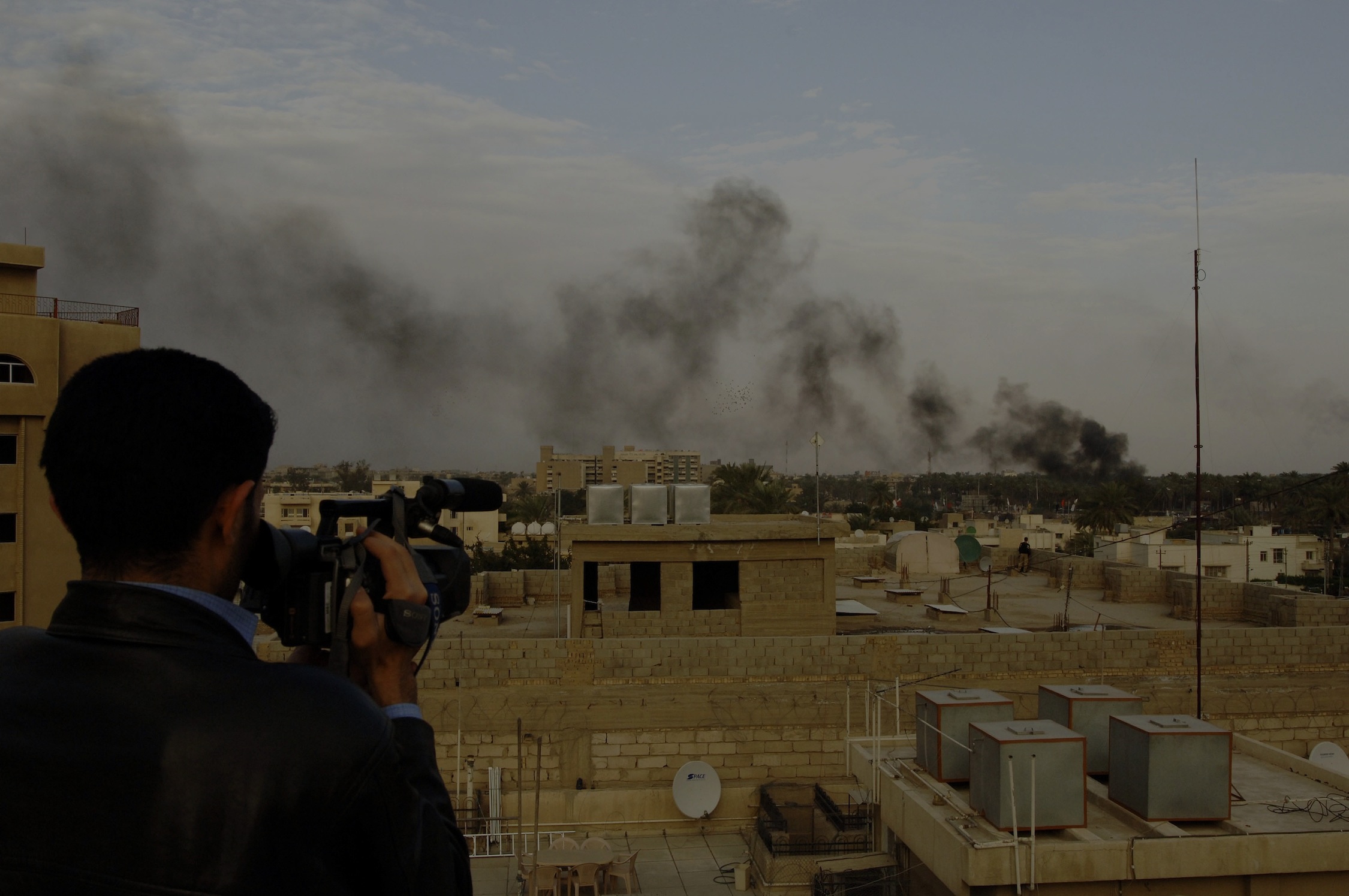 Cameraman filming a 2007 car bomb attack in Baghdad by Scott Peterson/Getty Images