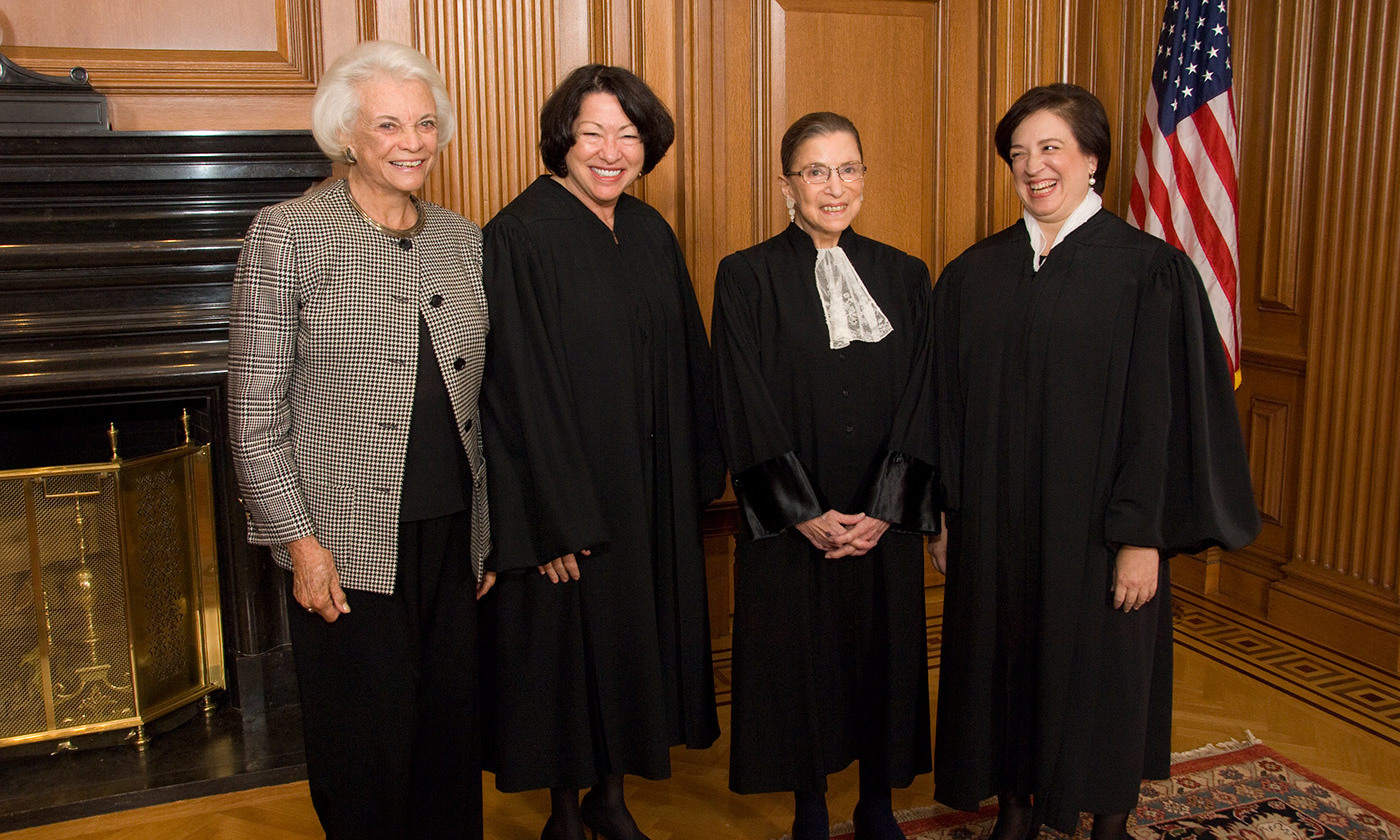 From left to right: Justice Sandra Day O'Connor (Ret.), Justice Sonia Sotomayor, Justice Ruth Bader Ginsburg, and Justice Elena Kagan in 2010. Wikimedia