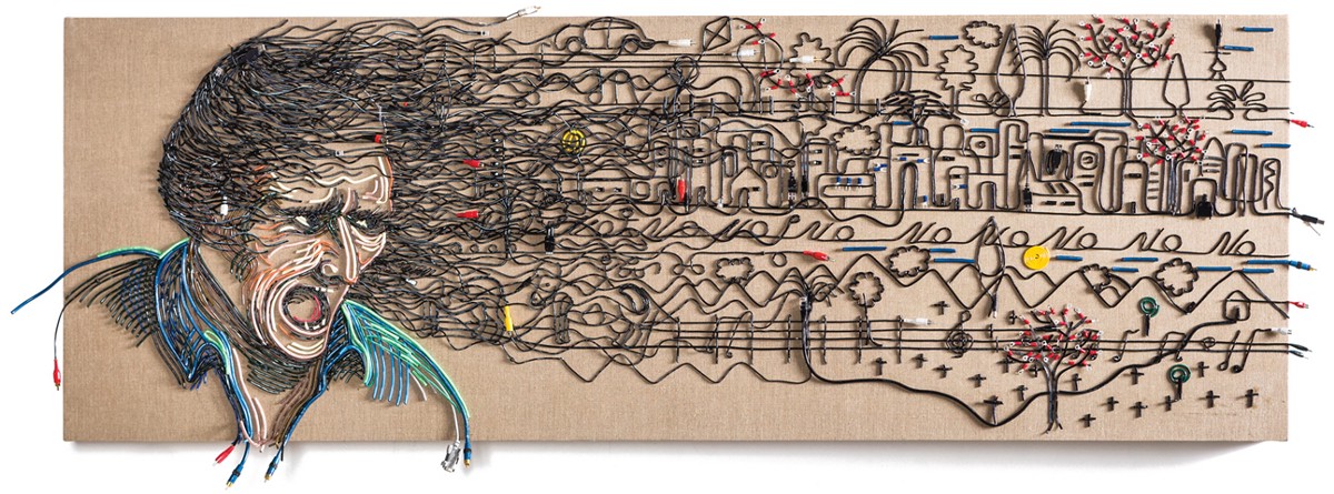 “Connected with the Past” by Federico Uribe. 2012. Electric cables on canvas.