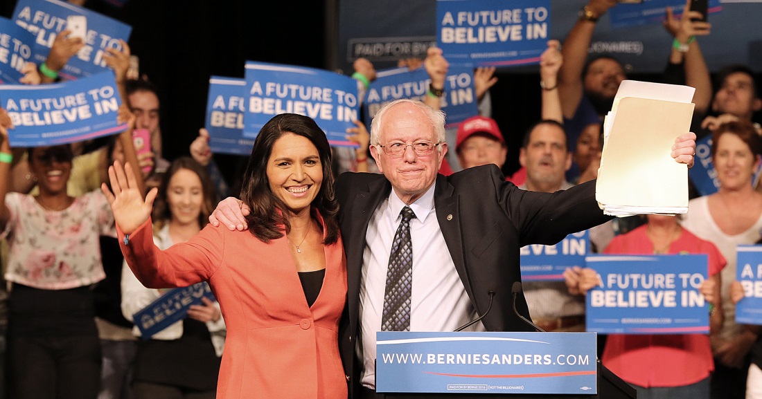 Tulsi Gabbard with Bernie Sanders.