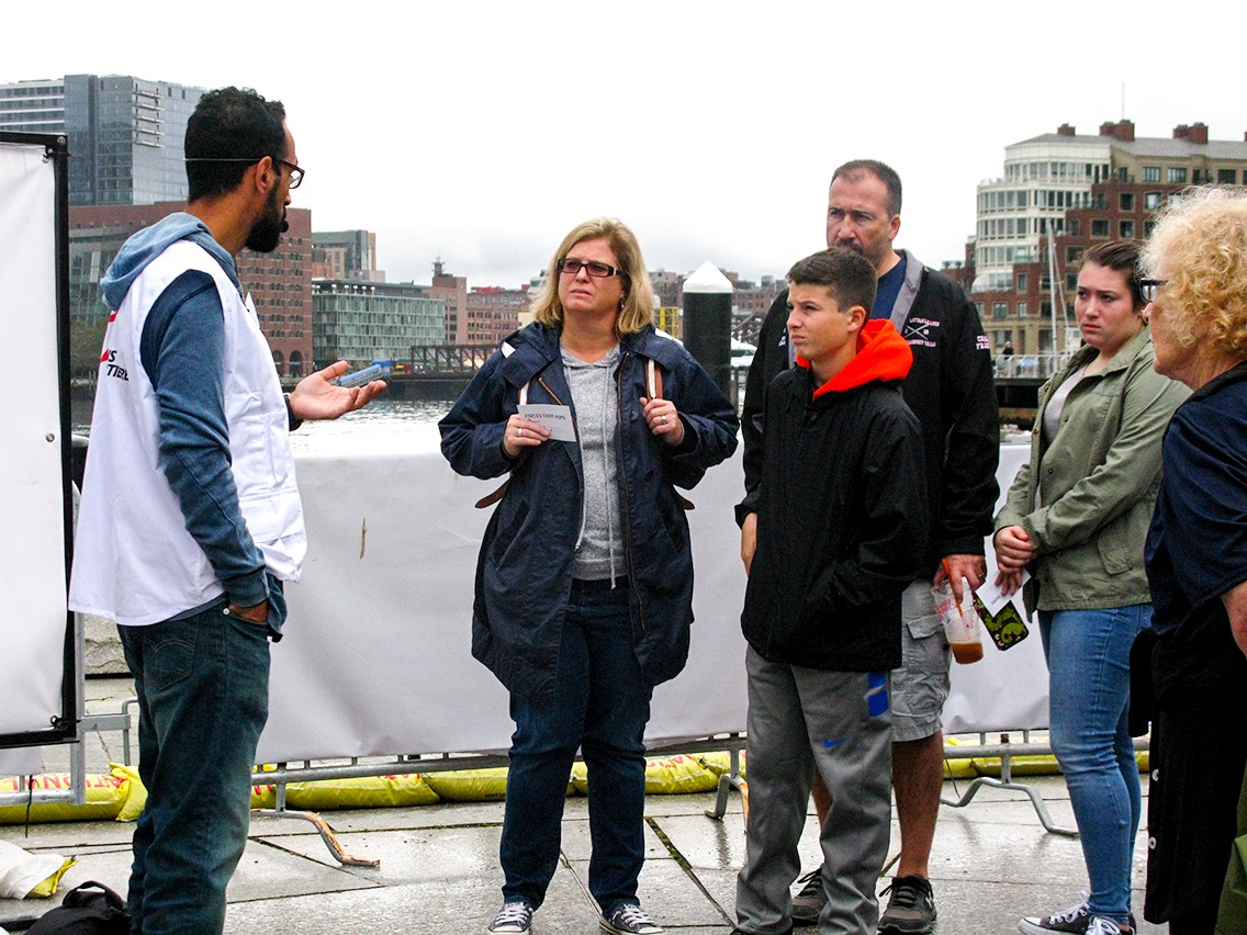 Thousands of visitors in Boston toured the pop-up refugee exhibit at Long Wharf last week. The tour lasts 45 minutes, in which I, along with other aid workers, lead people through an interactive experience learning about the push factors that drive people to become displaced, and the medical needs inside refugee camps.