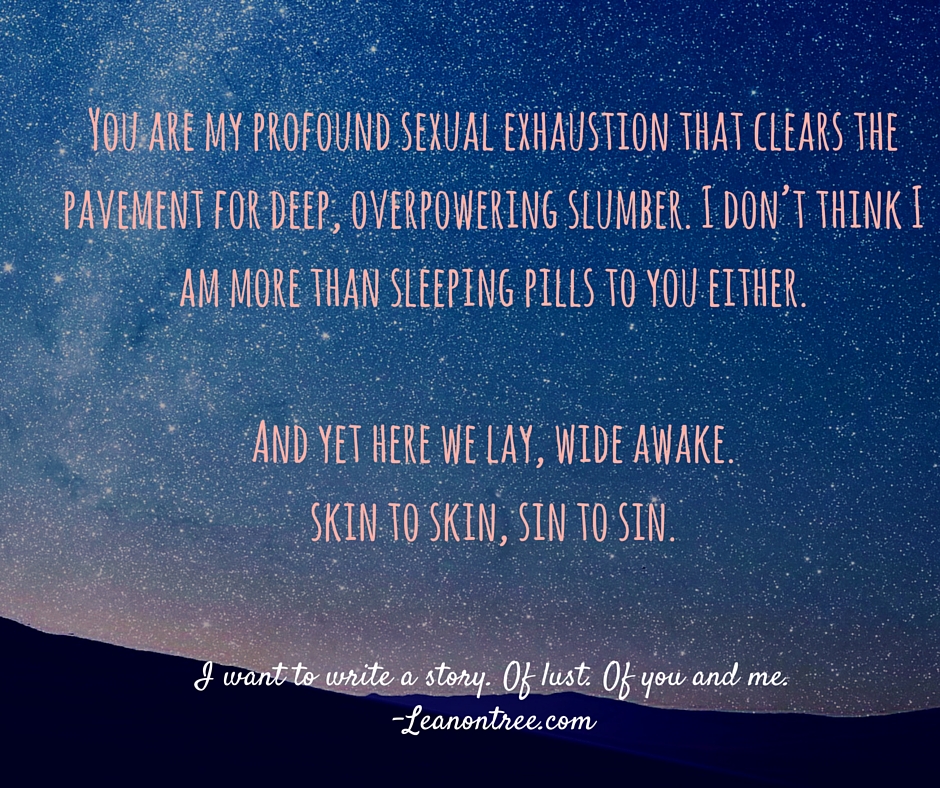 And yet here we lay, wide awake, skin to skin, sin to sin.