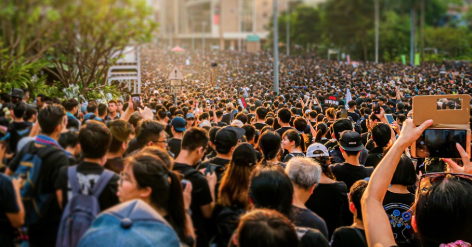 Demonstration against extradition bill, Hongkong, 16 June 2019. Photo by Wongan4614 Wikimedia commons CC BY-SA 4.0, Edited by Engagemedia