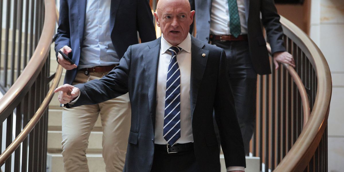 US Sen. Mark Kelly (D-Ariz.) arrives for a closed door meeting on Capitol Hill on December 16, 2025 in Washington, DC. (Photo by Chip Somodevilla/Getty Images)