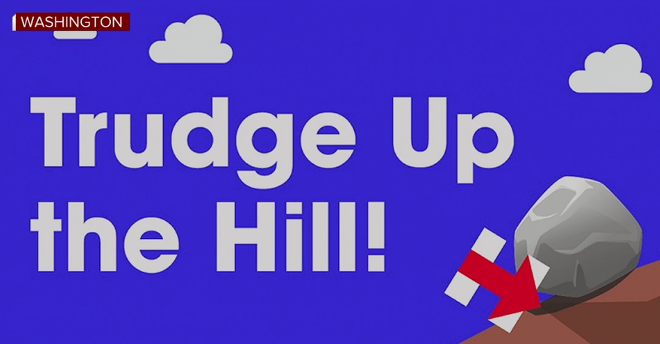 “Trudge up the Hill.” The graphic featured Clinton’s logo behind a large, round boulder on a steep incline.
