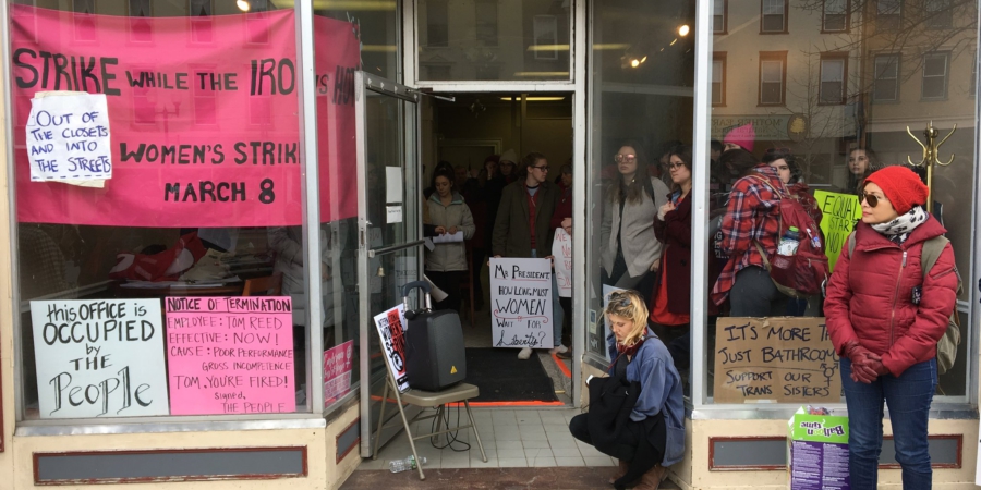 On March 8, a crowd of over 50 protesters in Geneva, New York, (population 13,261) occupied the office of Republican Congressman Tom Reed. The occupation was part of a women’s strike organized in connection with International Women’s Day by the Geneva Women’s Assembly.