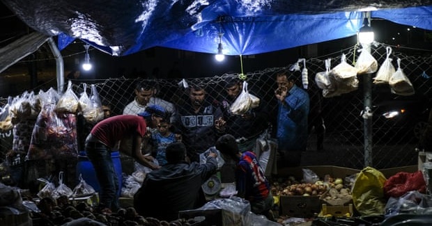 Syrian Kurds queue to buy food at a refugee camp in northern Iraq. Photograph: Byron Smith/Getty Images