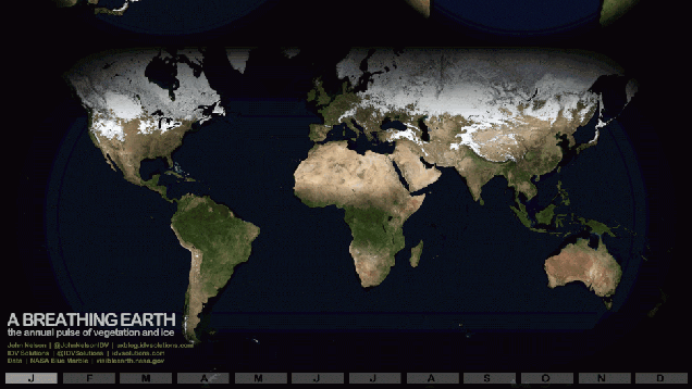 Using NASA's latest high-resolution satellite imagery of Earth, datavisualization expert John Nelson has created a pair of captivating animations that track seasonal transformations on the blue marble we call home.