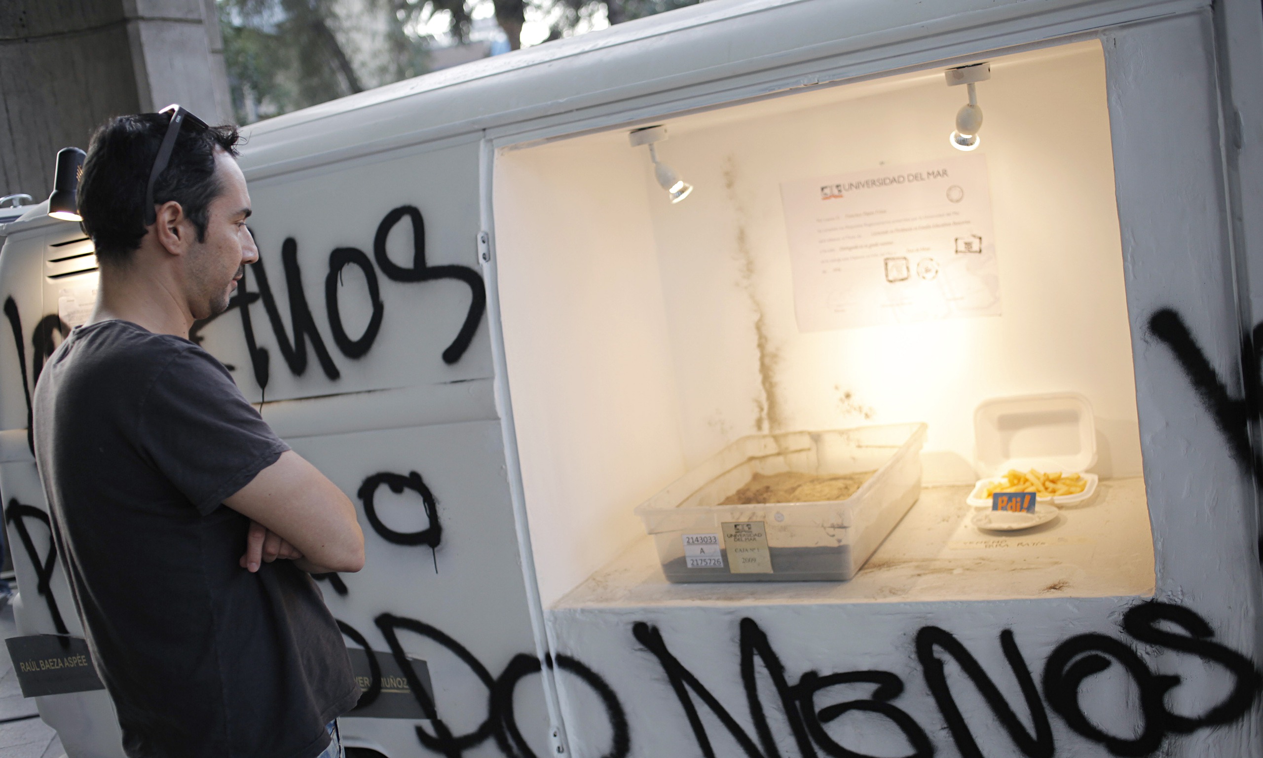 Image at top: Contracts for Chilean student loans worth $500m go up in flames – the 'imaginative auditing' of the artist Francisco Tapia, commonly known as Papas Fritas (Fried Potatoes). Photograph: David von Blohn/REX