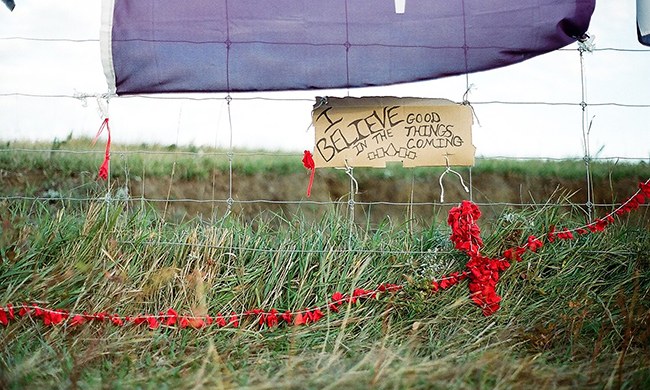 A message of hope earlier this summer at Standing Rock. Photo by Josue Rivas.