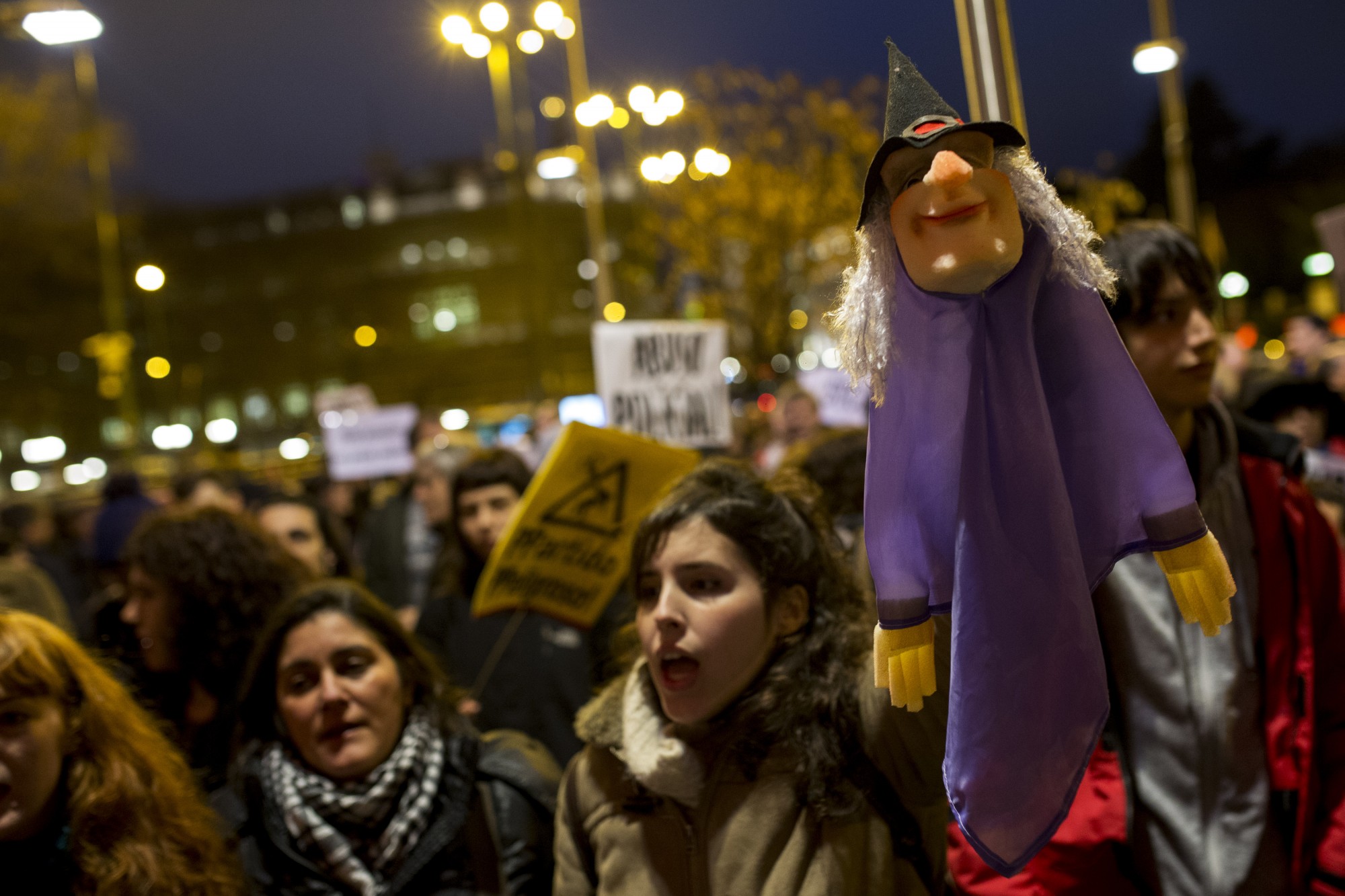 Raúl García and Alfonso Lázaro were performing a theater piece about government frame-ups during the Carnival celebrations in Madrid last Friday, February 5. In a sort of Punch and Judy routine, a witch puppet battled it out with a landlord, a judge, a nun, and the police.