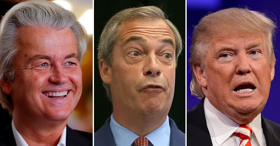 Right wing populists, from left to right: Geert Wilders, Nigel Farage and Donald Trump