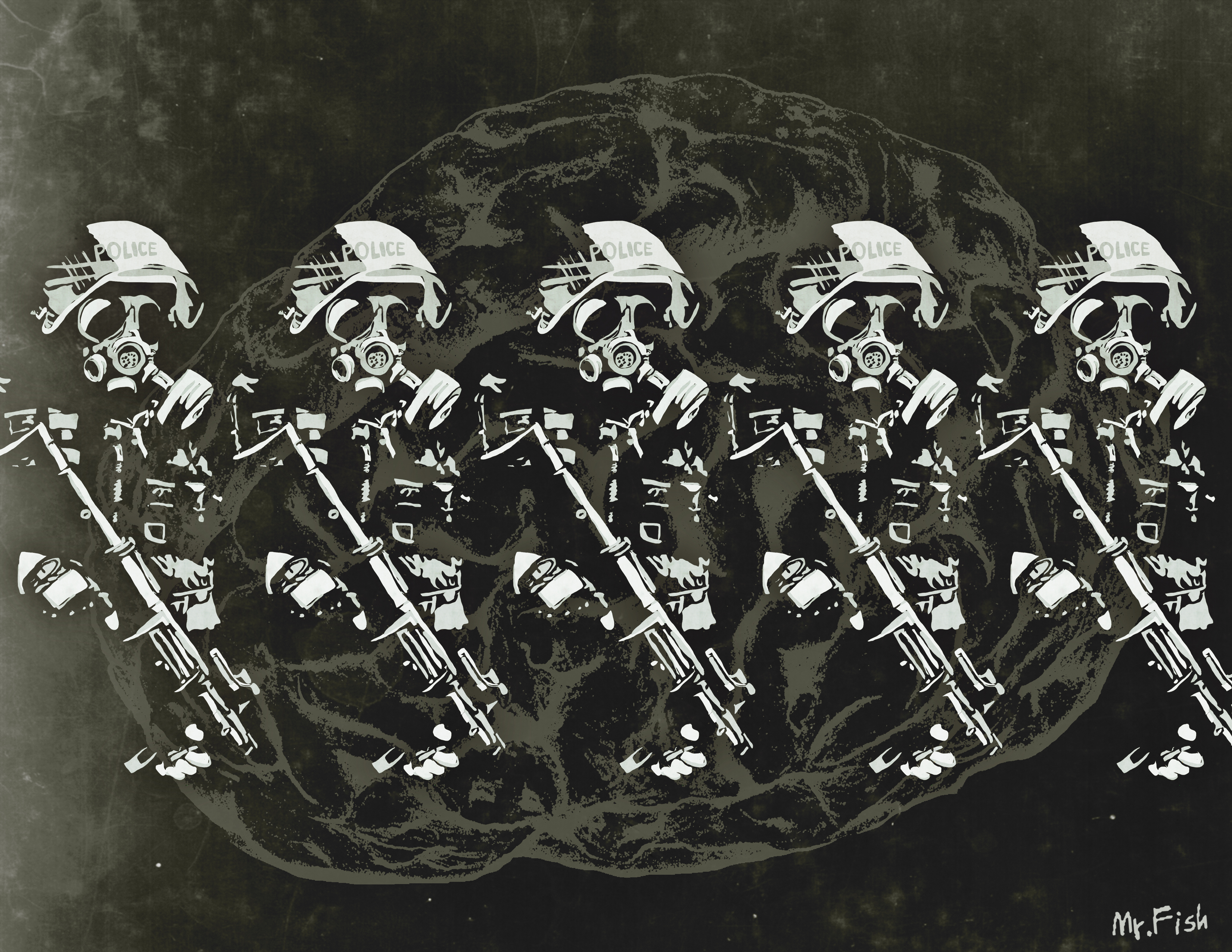 Mr. Fish, also known as Dwayne Booth, is a cartoonist who primarily creates for Truthdig.com and Harpers.com.
