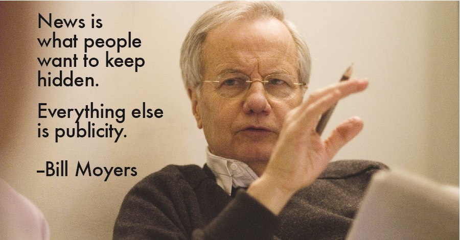 While Anderson Cooper and Rachel Maddow would probably beat him in a style competition, Moyers’ street cred comes from his sheer tenacity to delve into the stories that no one else is covering and interview guests that no one else is talking to. In fact, if you go to the homepage of his website at billmoyers.com , you’ll see the bulk of his content is focused on four issues: Money & Politics, Climate Change, Net Neutrality, and Economic Inequality. You won’t see these topics on the top banner of any other mainstream news site, and it’s important to remember that this scrappy, brilliant reporter is very much on a mainstream stage.