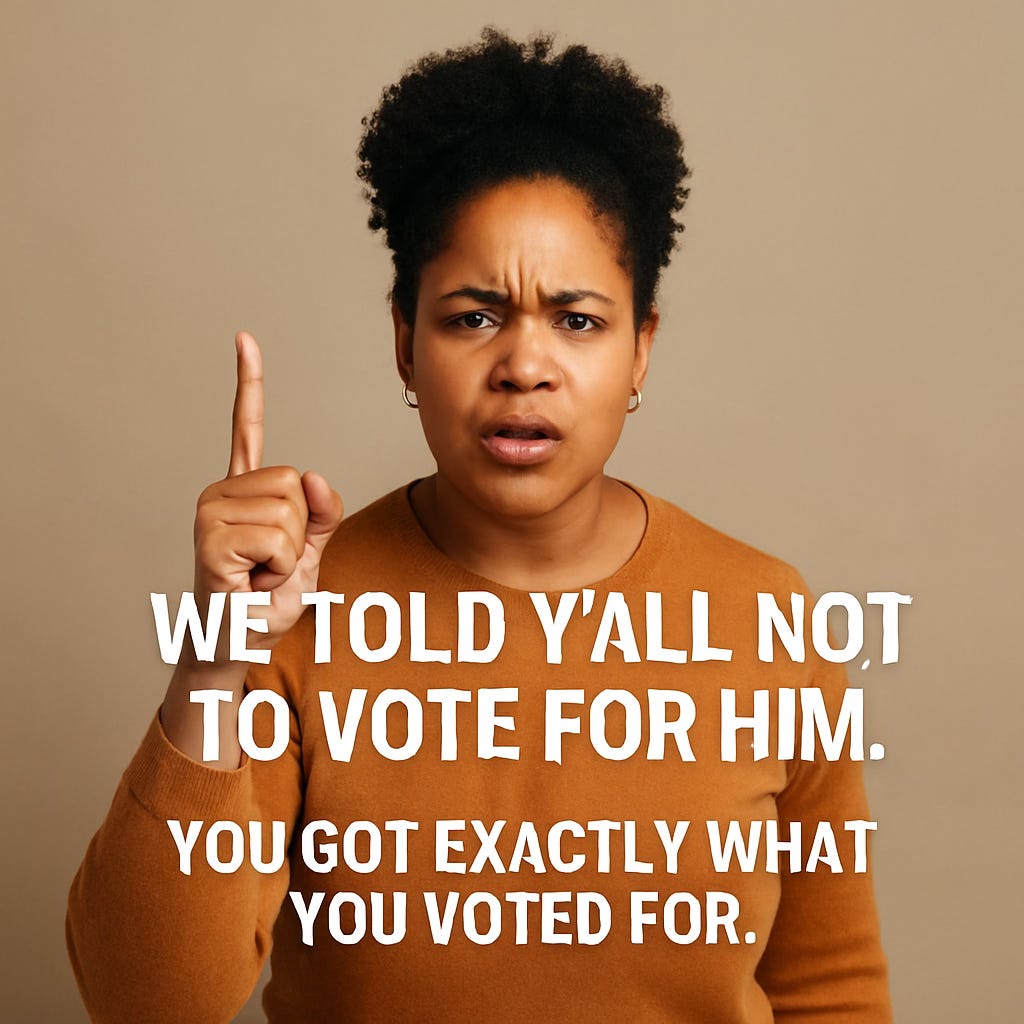 We told y”all not to vote for him" becomes a rallying cry for prophetic clarity in the age of political amnesia.