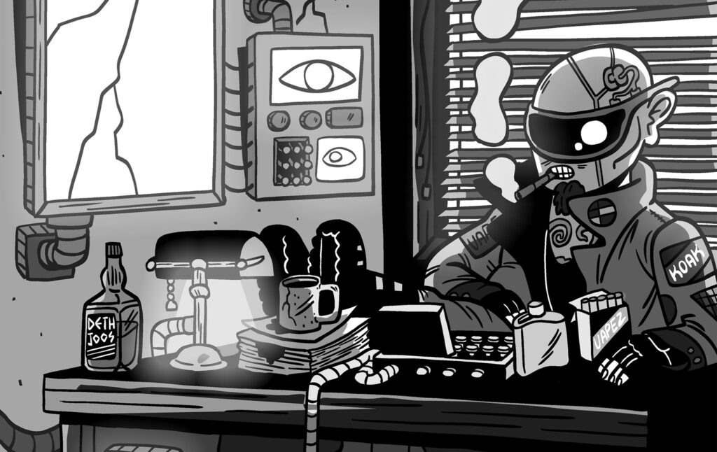 NOW TRY BUILDING YOUR OWN CYBERPUNK NOVEL! ILLUSTRATION BY AIDAN Y-M