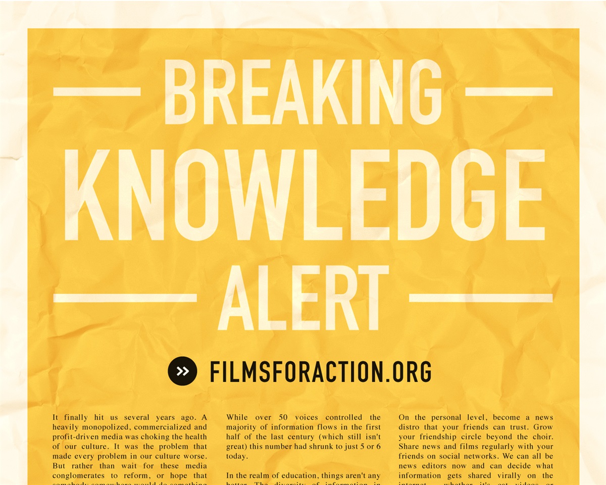 As an example of the kind of breaking knowledge we're talking about, below are 10 of our all-time favorite documentaries. These films are bursting with the big meta-memes of our time - the kind of information and perspective that could truly transform the world if it was to become common knowledge.