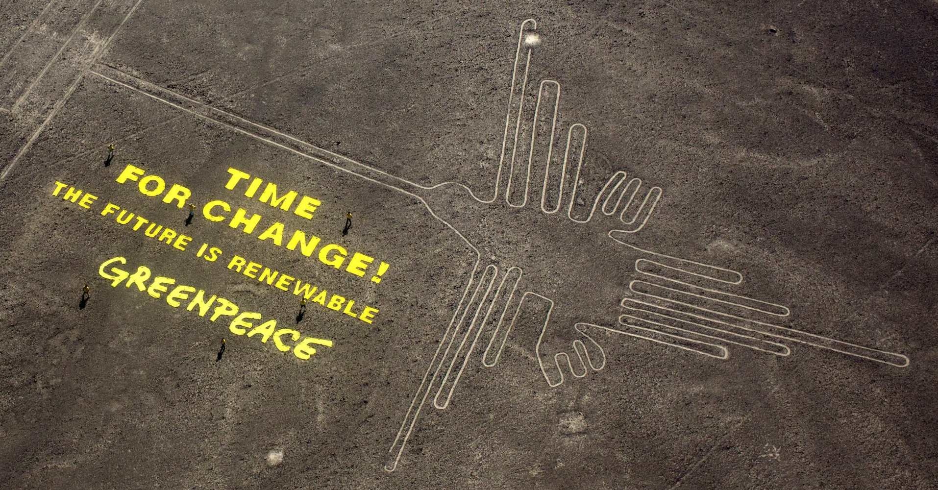 If you haven’t been living in a cave, you have heard that Greenpeace stenciled a message at the Nazca Lines, one of the world’s most historic cultural sites, last week.