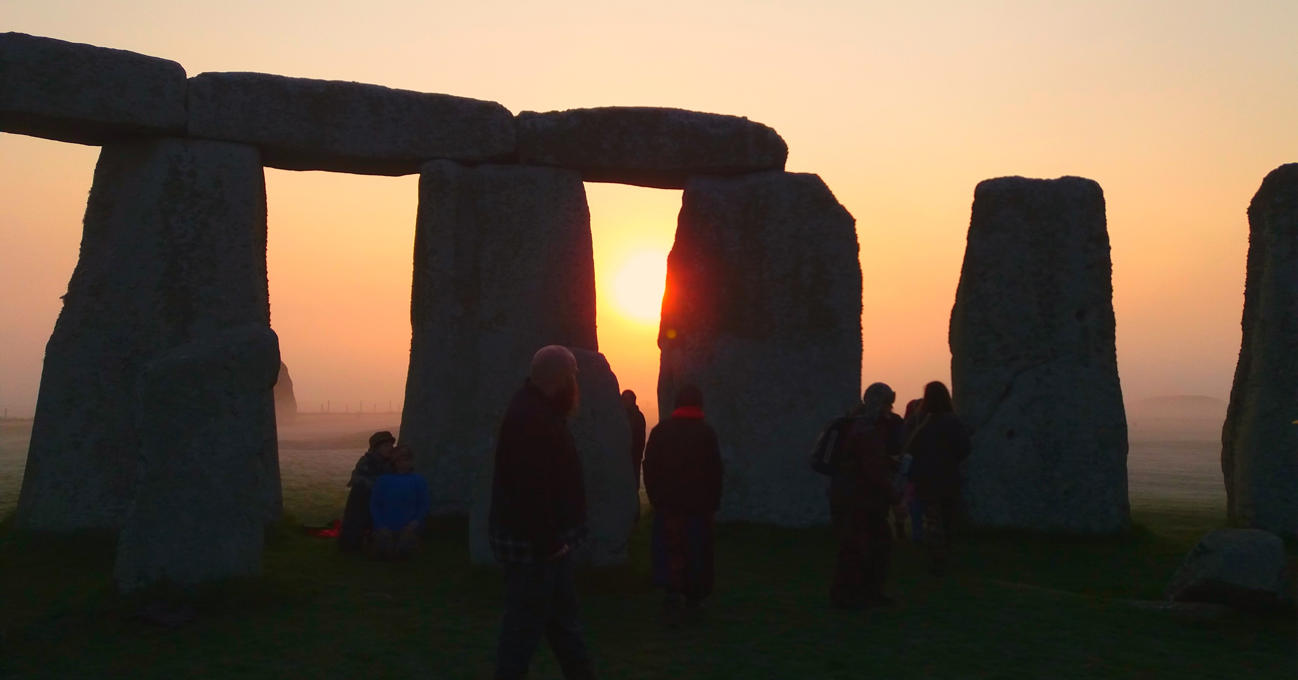 A discussion ensues and we decide to ground ourselves first then to head to the middle of the stone circle. Behind us the sun finally crosses the horizon; the lone figure calls aloud raising his hands to the sky and our crowd let’s out a cheer of approval. One of the young adults spontaneously jumps the fence, then another and soon we’re all across, heading for the centre of Stonehenge.