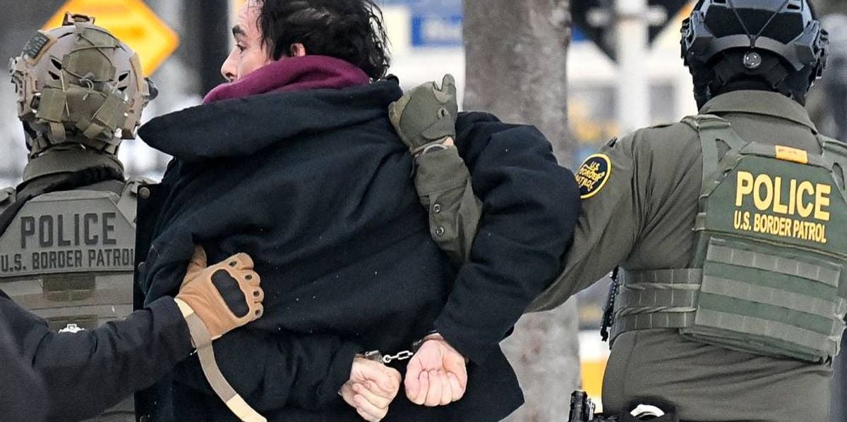 Federal agents detain a man as protestors demonstrate outside the Bishop Henry Whipple Federal Building in Saint Paul, Minnesota, on January 8, 2026. (Photo by Octavio Jones / AFP via Getty Images)