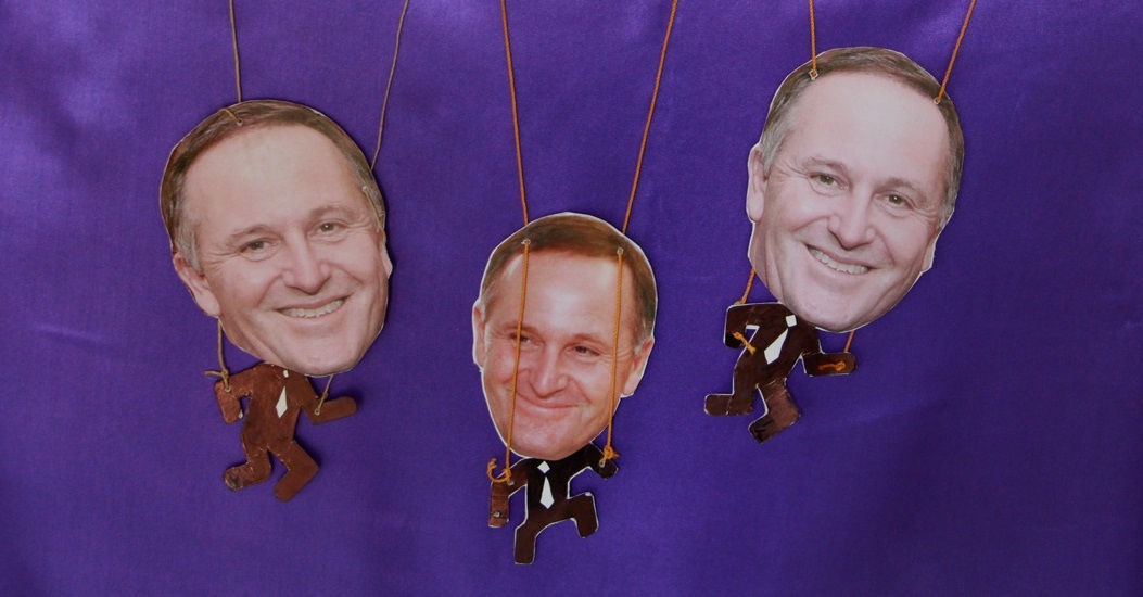 To make up for not being able to inflict some damage to Nu Zillun’s Twenty Ruling Families on protest day, I used some spare change to rent-a-crowd across the whole economy. Because it was such short notice, my rent-a-crowd’s numbers weren’t a game-changer for the Twenty Ruling Families’ government. If you are like John Key’s Zombie Faithful Voter Crowd you are doubtless well informed and you ‘don’t do protests’ and so you well know that oligarchs by definition are super-rich people who use their enormous economic wealth to steer the political trajectory of whole societies, as Dr. Jeffrey Winters explains in his 3D book, Oligarchy. You therefore have always known and without needing to read it in a school textbook, that the ‘Invisible Hand’ widely promoted in the 1980s to describe the efficient functioning of ‘free markets’ through price signals was just a euphemism for an unseen oligarchy pulling their puppets’ strings.