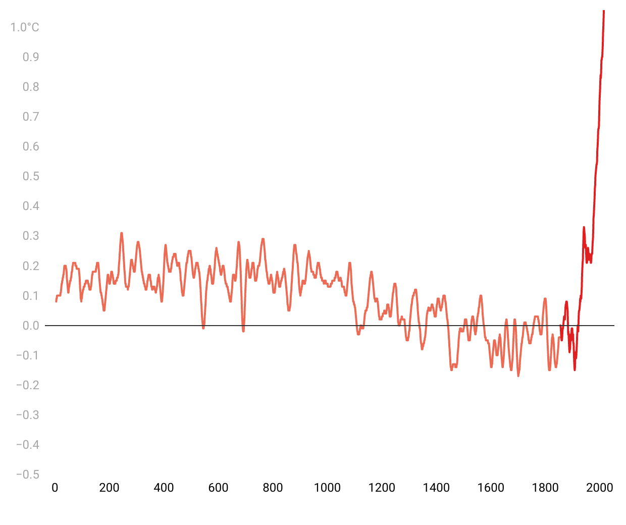 Chart: Elijah Wolfson for TIME Source: IPCC, 2001: Summary for Policymakers. Recreated from the original: Mann, et al, 1999