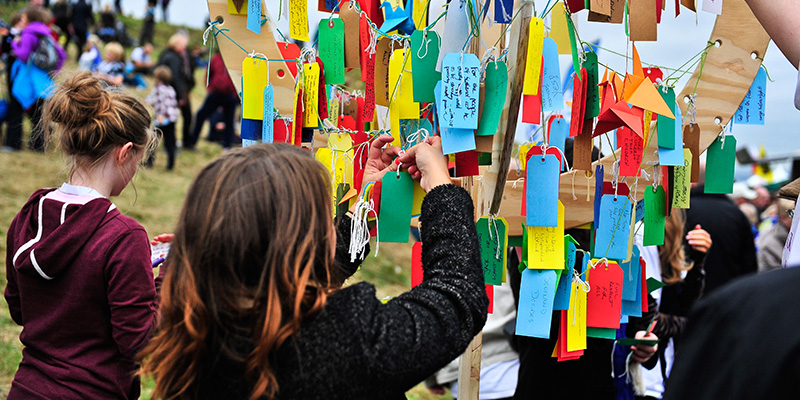 At a rally for independence, people wrote what they wanted to see from an independent Scotland and put in on a ‘wish tree’. Photos: David Officer, National Collective