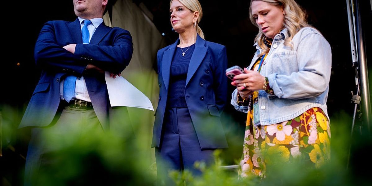 US Attorney General Pam Bondi (C) arrives for a television interview outside the West Wing of the White House on April 28, 2025 in Washington, DC. (Photo by Andrew Harnik/Getty Images)