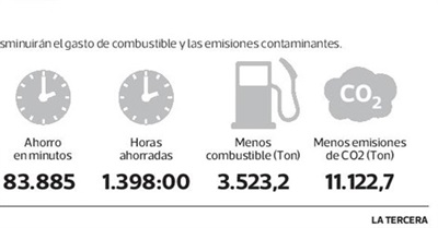 En total, según la DGAC y en base a las estadísticas de marzo de 2013, sumando los vuelos que Lan, Sky y Pal realizan en un mes, se ganarán cerca de 116 horas de tiempo, lo que implica un ahorro de 293 toneladas de combustible y, lo que es aún más importante, 926 toneladas de CO2 menos en la atmósfera.