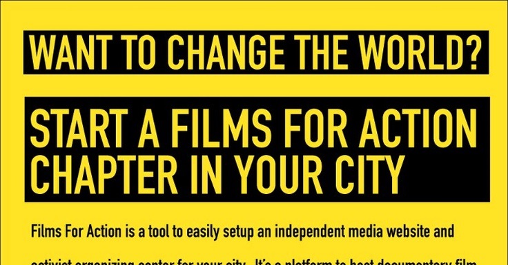 Films For Action's City Chapter websites aim to provide a definitive web-based resource for the activist community of that city. By providing a robust set of information and communication tools geared to amplify the impact of local efforts, the website serves to build synergy and momentum to affect dramatic and radical change at a city-wide level. We believe an informed, well connected, and engaged local community is the first step to creating a just and sustainable society. To achieve this end, the website includes: