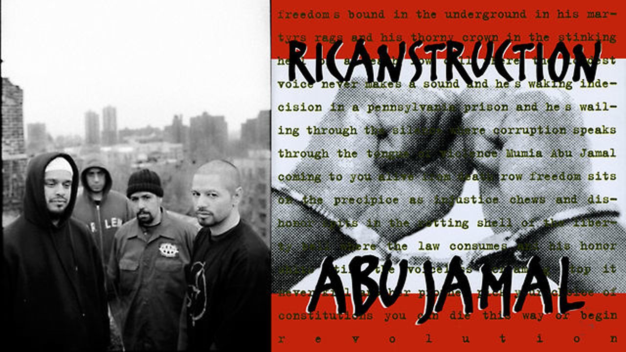 Sometime in the Spring of 1997, RICANSTRUCTION recorded a song for Mumia Abu Jamal for their first full length album Liberation Day. The song soon became an anthem for the movement to free Mumia Abu Jamal. Mumia is the US held political prisoner wrongly convicted for the death of Philadelphia police officer Daniel Faulkner on December 9 of 1981.