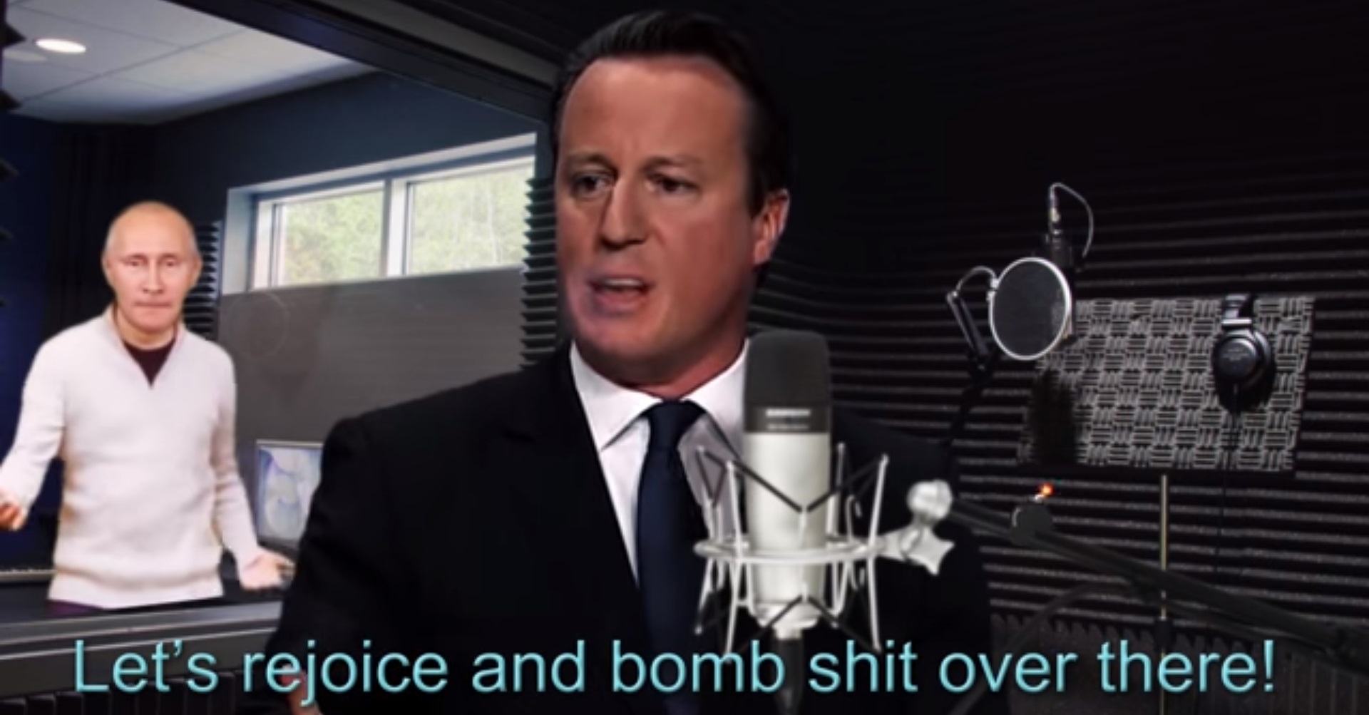 Cameron, Obama, and Putin have joined forces in a brand new take on the classic festive song “Do They Know It’s Christmas“, showcasing their heartfelt Christmas presents for the people of Syria. What is Christmas about if not reindeer, Obama dressed as Santa, and drone strikes? ‘Bomb the World’ has all three.