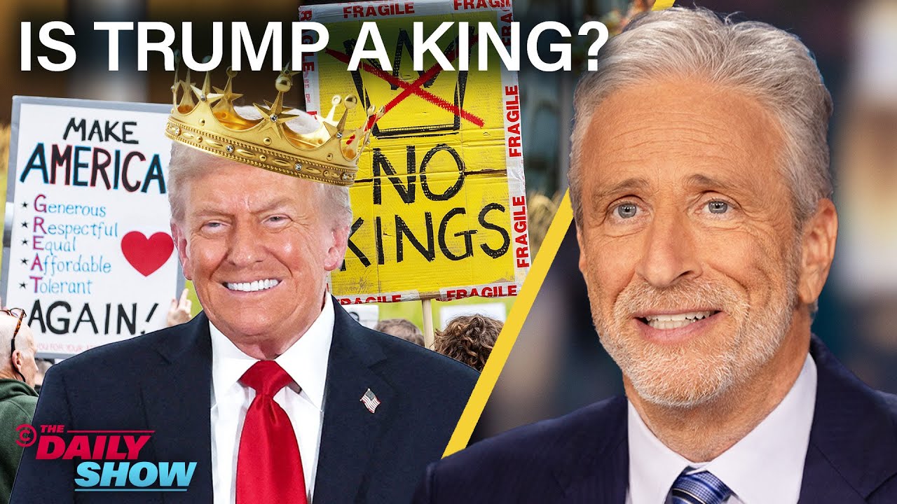 Jon Stewart examines the "No Kings" protests that failed to meet Fox News’s violent expectations, why Trump fits the mold of a gold-smeared monarch, and how even the Declaration of Independence foreshadowed Trump’s king-ish antics.
