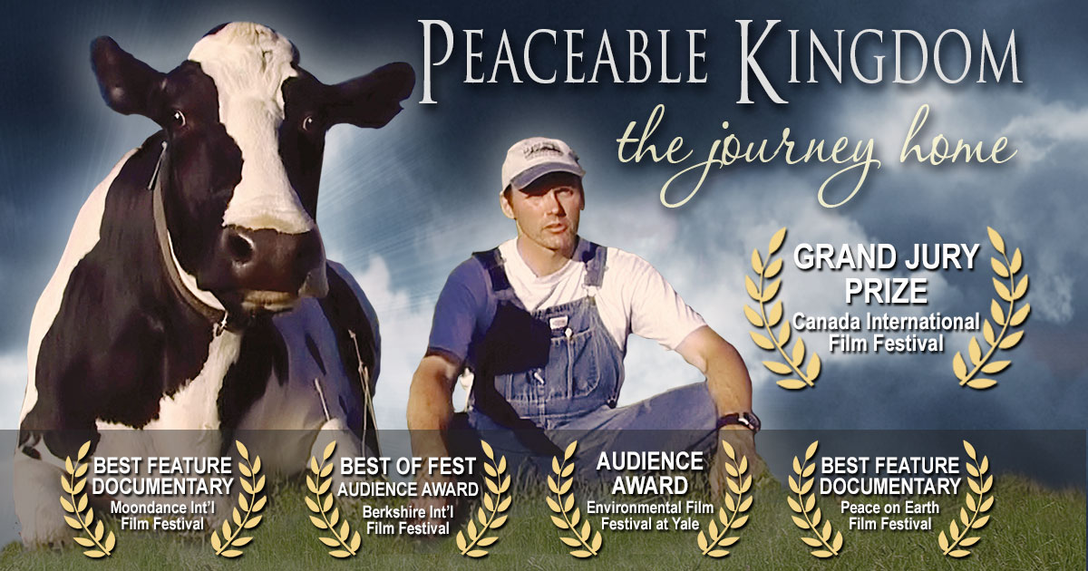 Watch the film here. Peaceable Kingdom: The Journey Home explores the powerful struggle of conscience experienced by several people from traditional farming backgrounds who come to question the basic assumptions of their way of life. A riveting story of transformation and healing, the documentary portrays the farmers' sometimes amazing connections with the animals under their care, while also providing insight into the complex web of social, psychological and economic forces that have led to their inner conflict. Interwoven with the farmers' stories is the dramatic animal rescue work of a newly-trained humane police officer whose sense of justice puts her at odds with the law she is charged to uphold. With strikingly honest interviews and rare footage demonstrating the emotional lives and intense family bonds of animals most often viewed as living commodities, this groundbreaking documentary shatters stereotypical notions of farmers, farm life, and perhaps most surprisingly, farm animals themselves. - Jenny Stein
