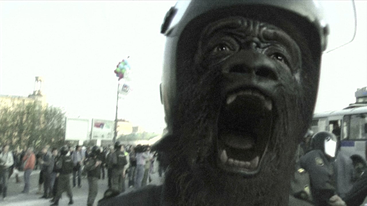 Exclusively real documentary video footages were used. Apes faces are superimposed on real police not actors. Documentary video was shot at the Bolotnaya square during demonstration in Moscow, Russia on May 6 2012.