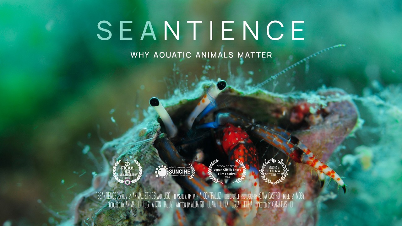 Seantience is a short documentary, produced by Animal Ethics and directed by Xiana Castro, exploring the sentience of aquatic animals, including invertebrates. Awarded Best Cinematography at FICAA and selected for the SUNCINE International Environmental Film Festival.