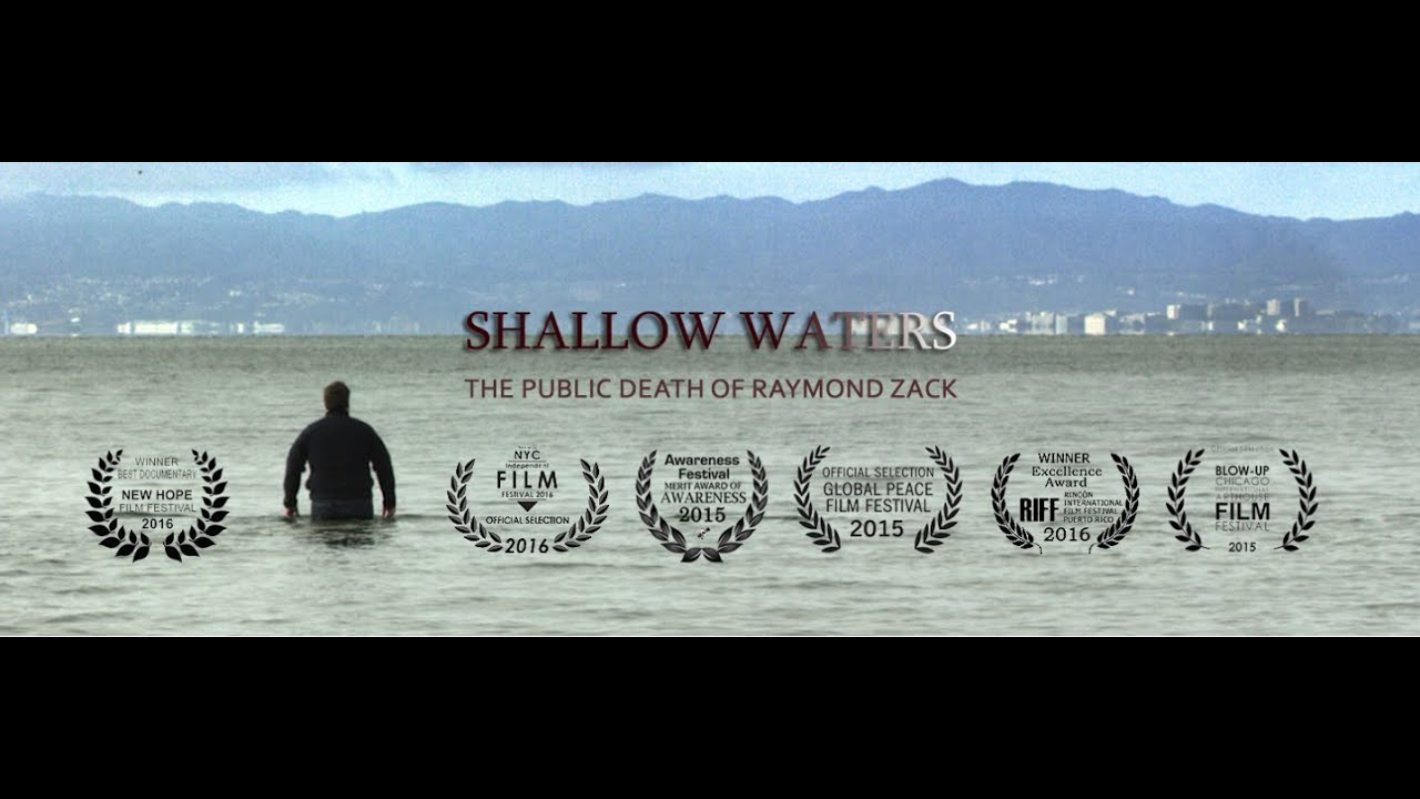 REVIEWS: "I was stunned by your doc. The outrage still lingers!" (Paul Sloop, Short Films Programming Manager, CLEVELAND (OH) INTERNATIONAL Film Festival (2016) //"'Are we our brothers' and sisters' keepers?' Or put another way, is selfishness a gross aberration of human nature? I think it is. But watching this superbly crafted movie gave me pause. A man drowned in shallow water as onlookers stood by. What does this say about them, about us, about the capacity for us to unite and create a society where people care about each other?" -MIchael Steve Smith, Author, Attorney, Co-host, Law and Disorder Radio (WBAI / Pacifica Radio Network)// "Shallow Waters is a lyrical and haunting documentary that asks penetrating questions about the value of human life and what has become of the social contract. As good as independent media does, it tells us not what to think but tells us what to think about. The public drowning of Raymond Zack was a deeply disturbing incident. As we gently unpeel the layers of what happened that day at an Alameda beach, the ramifications bear deeply on what it is to be human in the 21st century." -Tracy Rosenberg, Executive Director, Media Alliance// "The Public Death of Raymond Zack captures with great poignancy the complexities, uncertainties, and vulnerabilities that mental illness triggers for the individual, and more visibly, for society at large. The narrative storytelling is compelling and skillfully crafted, and its message is clear: something has got to change." -Renata Sago, Reporter / Anchor, WMFE - FM / Orlando (NPR)