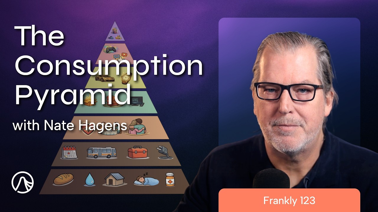 This week’s Frankly unpacks humans’ current identification with the label “consumer.” Consumption is something much deeper and more nuanced than shopping or spending. Nate highlights the ways that it shows up across our whole lives –from basic needs and stability to status and mental escape. He outlines a “consumption pyramid” framework that acts as a map for the different layers of consumption present in daily life, emphasizing that they vary in dependency, reliability, and necessity.