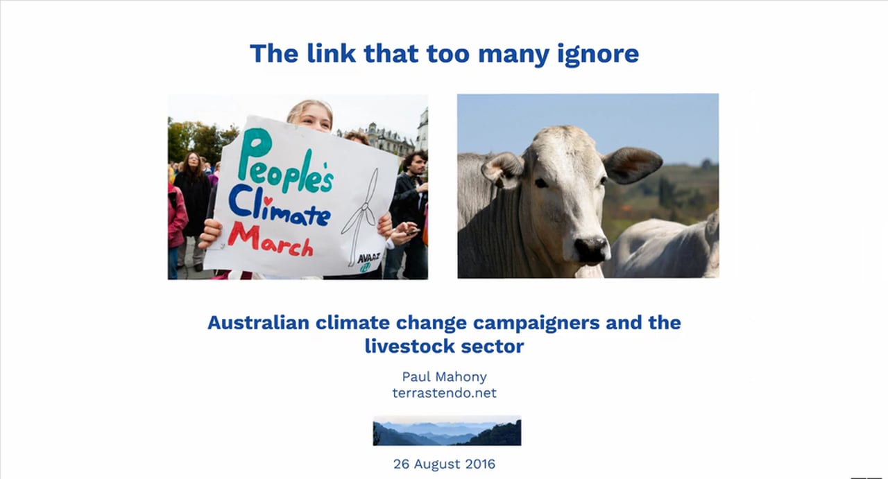 This is a video version of my presentation "The link that too many ignore: Australian climate change campaigners and the livestock sector".