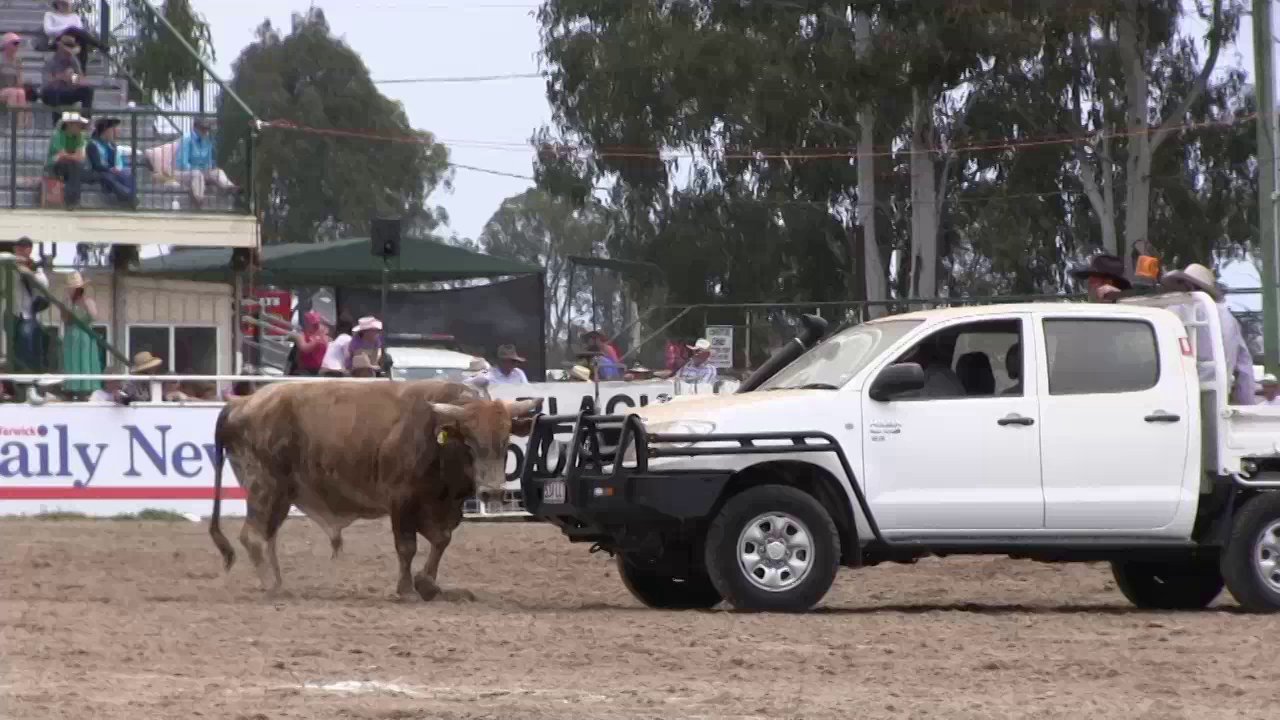 Disgraceful treatment of a bull who broke his leg at the Warwick Rodeo on Saturday.